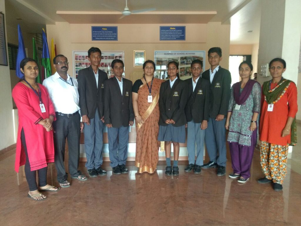From Left: – Mrs. Rupali Lalge, Mr. Santosh Kadam, Aditya Satpute, Nikhil Wagh, Principal(Mrs. Joysey Joseph), Saee DEokate, Prem Sakhare, Siddhesh Choudhar, Mrs. Swati Kadu, Mrs. Shivai.